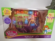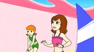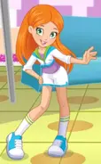 In the Splashin' Fashion Pool Party set, she has braided hair dyed with purple highlights that turn blue. She wears a two-piece blue swimsuit with yellow trimming and a single strap.