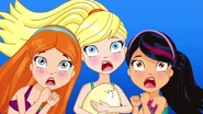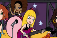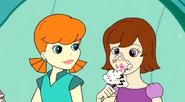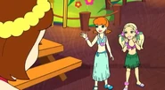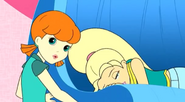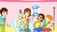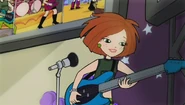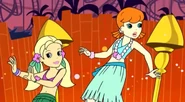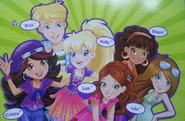 Her hair is pigtailed in 2 Cool At the Pocket Plaza and PollyWorld. While performing music, she lets her hair down but becomes short without any fringe.