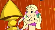 In Lunar Eclipse, she was seen wearing different outfits: a blue shirt, White jeans, sunglasses and sandals with a purse, a white blouse, a purple vest, a black and white skirt, and shoes, a Green Sweatshirt, a blue skirt, and brown boots.