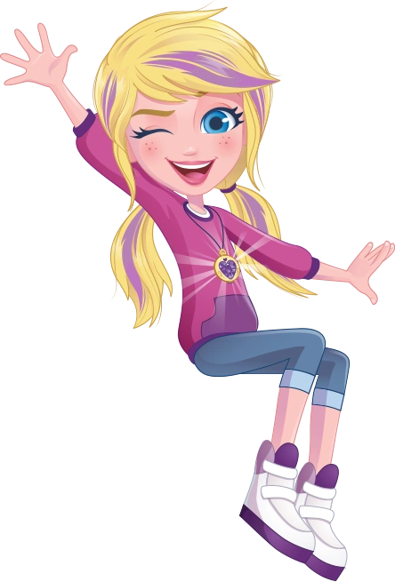 Polly loves helping people. She is also an active preteen girl, constantly moving around a lot. Even though her father is wealthy, she is incredibly kind to her friends and other people and puts her needs aside for others. Polly loves animals, traveling, sports, and fashion. Polly says, Who needs perfect when you've got friends?. She is described as confident, cool, friendly, optimistic, adventurous, resourceful, and loyal. She loves having fun, adventures, and, importantly, friends. She has many hobbies, such as roller skating, water skiing, snowboarding, shopping, listening to music, and singing. Polly has a fun and cool fashion style. Polly is the character in the 2004 series. She is voiced by Tegan Moss.